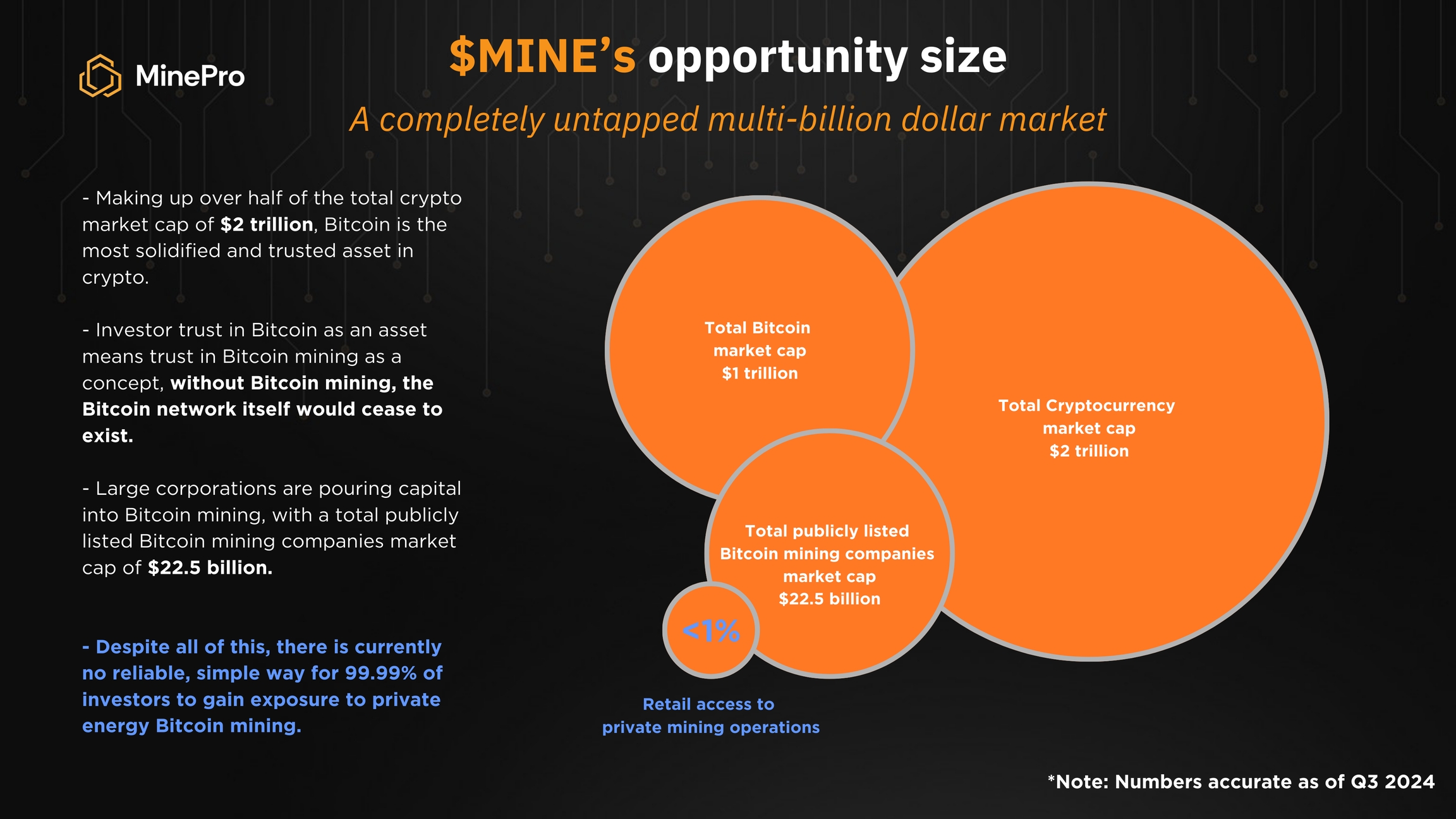 3 - Completely non-existent complexity and barriers of entry to get involved, investing in $MINE is no more complex than buying Bitcoin itself.